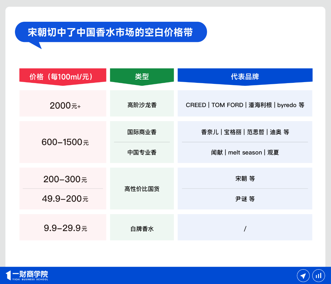 第二,紧跟市场趋势。宋朝以用户需求为第一开品原则,并将经过市场验证的热门香型、大牌香型进行高度还原复刻。在确保用户体验的基础上,又降低了用户的使用门槛。这与优衣库和面料商东丽合作开发摇粒绒,将昂贵面料变成“穷人的貂”如出一辙。