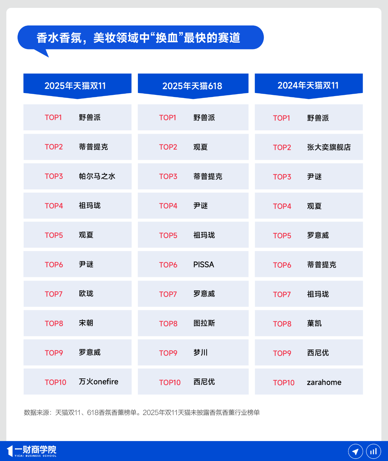 2025年双11榜单揭晓,香水香氛行业再次证明了它是美妆领域中“城头变幻大王旗”最快的赛道之一。