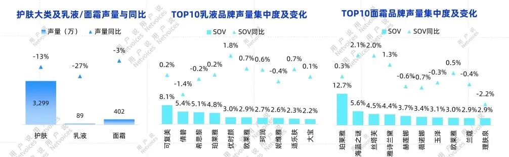 乳液可复美以8.1%领跑,国货优时颜同比增长1.8%,面霜珀莱雅以12.7%领跑